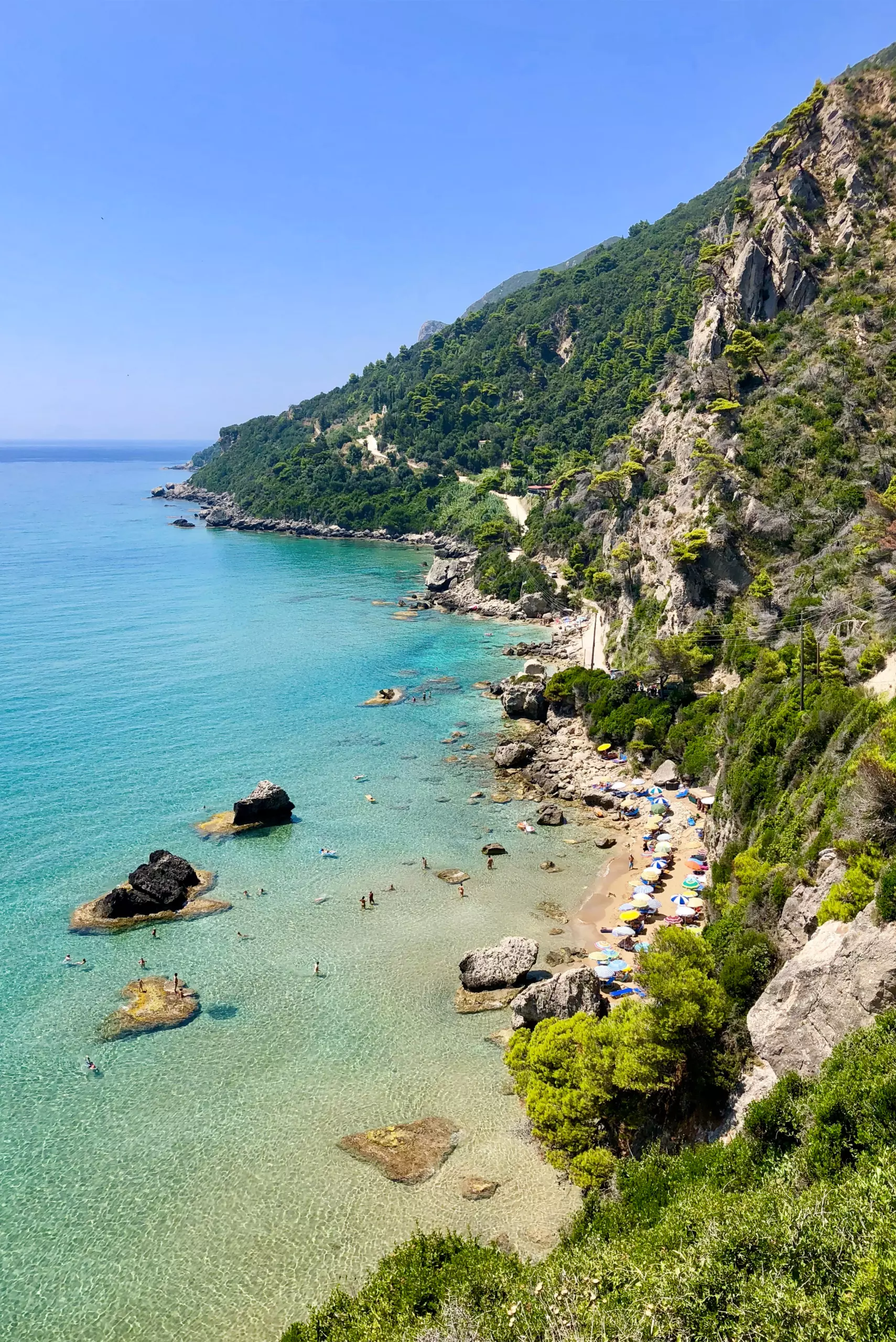 Pár fénykép után indulunk is tovább Paleokastritsa felé, ahol egyedülálló természeti kincsekkel találkozhatunk. Tengerpartjait hatalmas sziklák borítják, öbleiben a kék és a zöld szín ezernyi árnyalatával szembesülünk. Egy domb tetején található a falu a kolostora, érdemes lesz rászánnunk az időt és felgyalogolnunk. Sokat nem időzhetünk, mert vár ránk Angelokastro, a 13. századi bizánci erőd, a 305 méteres sziklacsúcson magasló angyalvár, ahonnan pazar kilátás tárul majd elénk.